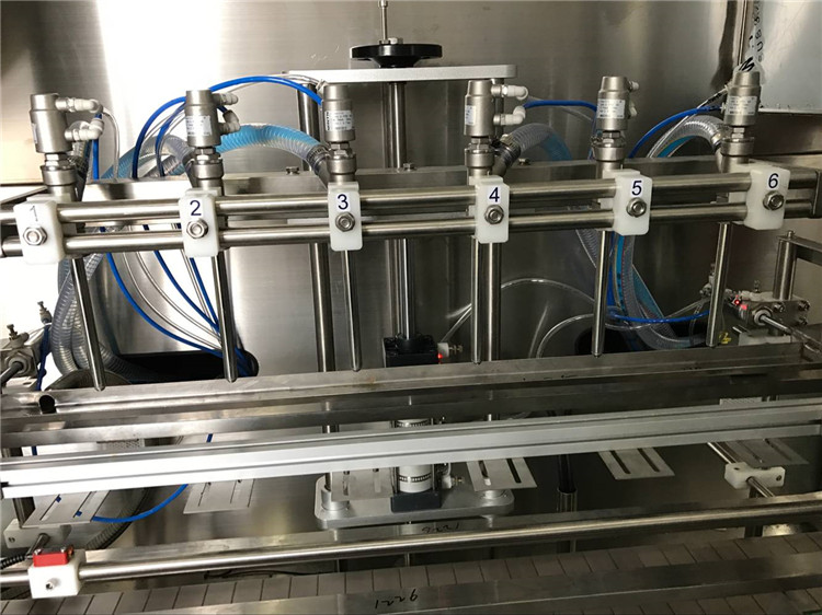This production line includes: a 4 head piston filling machine, a capping machine, an aluminum foil sealing machine, a 10w laser marking machine, a laser marking machine, a semi automatic carton sealing machine, a two face labeling machine ;